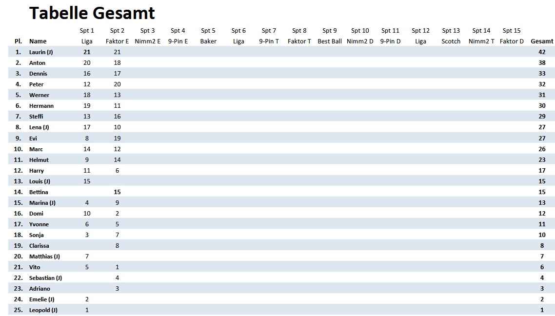 Bei jedem Spieltag werden Punkte gesammelt, die sodann in die Gesamtwertung eingehen: